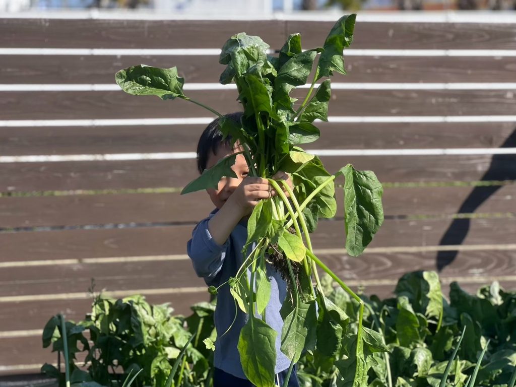 ・家庭で出る野菜くずや畑で出た野菜の残渣を有機物として使ったり、地下水や雨水を利用したりする循環型農法で野菜を育てることで、子どもたちが食に関心を持つとともに命のつながりや尊さを感じることができます。